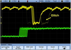 התקלה המוצגת באיור 3 נלכדה באמצעות האוסצילוסקופ מסדרת InfiniiVision 7000B של Agilent, אשר יכול לעדכן צורות גל בקצב של עד 100,000 פעמים בשנייה. בקצב עדכון זה, ההסתברות הסטטיסטית ללכידת אות התקלה הספציפי על-ידי האוסצילוסקופ גדול פי שניים בקירוב על כל שנייה. לאחר גילוי התנהגות לא צפויה זו במעגל ההתקן, ניתן לבצע פעולות נוספות של איתור באגים על מנת לבודד אותה.