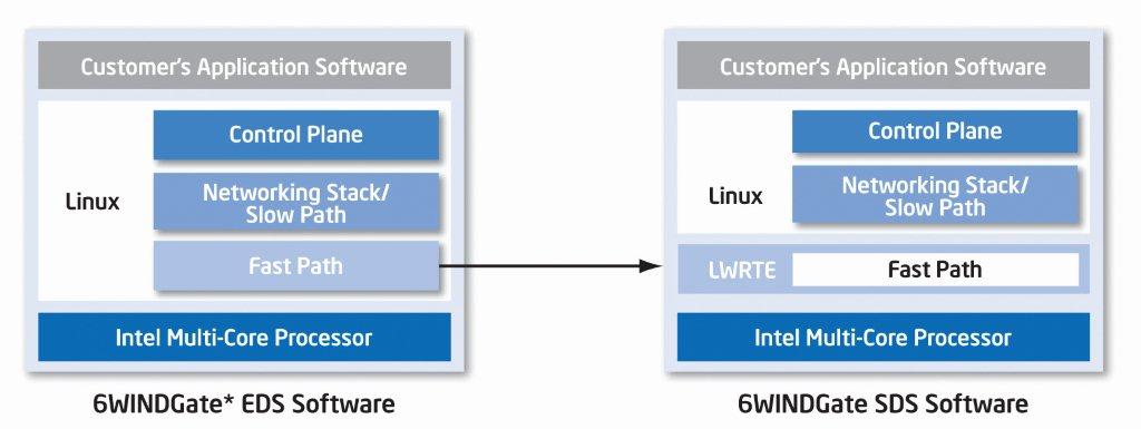 *6WIND מפשטת את ביצוע האופטימיזציה של מערכות כשהוא מגיע לביצועים של 246 מגה–חבילות בשנייה (Mpps) עם פרופיל EDS, הפתרון 6WINDGate הוא אחד הפתרונות המהירים ביותר והשלמים ביותר עבור מעבדי ®Intel לעיבוד חבילות בתוכנה עבור השכבות 2 עד 7. הוא מתוכנן במיוחד על מנת לפשט את פיתוח התוכנה ולהקטין למינימום את זמן תכנון המערכת באמצעות מישור בקרה מבוסס *Linux. הפרופיל של ערכת הפיתוח המורחבת 6WINDGate עונה על הספקטרום המלא של דרישות התכנון בריבוי ליבות, מליבה אחת לכל מספר של ליבות במעבד יחיד או בריבוי של מעבדים. כדי לשתף יע”מים (CPU), הנתיב המהיר ממומש כמודול של גרעין Linux בין מחסנית הרישות של Linux לבין מנהלי הממשק, ובכך גדלה התפוקה (throughput) במידה רבה מאחר שקוד Fast Path מועבר מליבה לליבה, ועוקף את רוב התקורה של מחסנית הגרעין של Linux. פרופיל “SDS” של 6WINDGATE יספק ביצועי עיבוד חבילות מרביים. בפלטפורמות של ריבוי ליבות המוגדרות בקונפיגורציה עם פרופיל SDS, הקוד של שכבת Fast Path פועל בערכת הפיתוח Intel Data Plane Development Kit בריבוי של ליבות, ומגדיל למקסימום את ביצועי עיבוד החבילות של המערכת, מאחר שרוב החבילות עוברות עיבוד בתוך שכבת Fast Path במקום שיועברו אל מחסנית Linux. מחסנית Linux עצמה מוגדרת בקונפיגורציה לפעולה רק באותו מספר ליבות שנדרש (בדרך כלל אחת), ומאפשרת בכך להקצות את יתר הליבות לשכבת Fast Path.*6WIND מפשטת את ביצוע האופטימיזציה של מערכות