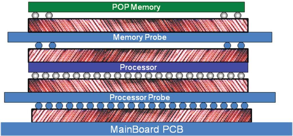 כאשר ניצבה מול מהנדסי הבדיקות רמה כה גבוהה של מורכבות, נוצר אצלם הצורך בתושבת שבאמצעותה אפשר יהיה לבדוק את המעבד והזיכרון מהדור הראשון. הצעות רבות של מוצרים הופיעו עבור תושבת עם מערום בשכבה אחת. על מנת לעבור מהתקנים של הדור הראשון להתקנים מהדור השני, מהנדס בדיקות זקוק לתושבת מערום של 2, 3, או 4 שכבות. במהלך שלב הפיתוח, מהנדס הבדיקות צריך להשתמש ב-probe של המעבד, שמוצב בין המעבד לבין מעגל הפיתוח הראשי, כדי להתחבר אל הנתח הלוגי (logic analyzer) ולבצע את בדיקת הפונקציות של יכולות האותות (signal capability function). לאחר מכן, מהנדס הבדיקות משתמש ב-probe עבור זיכרון, שמוצב בין הזיכרון לבין המעבד, על מנת לבצע תיקוף של ביצועי הזיכרון החדש יותר.