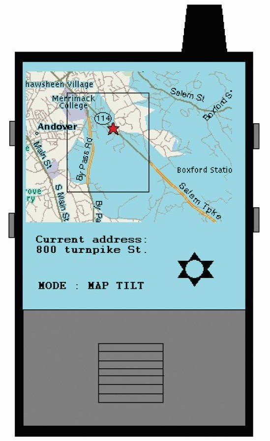 איור 3 מציג מסך רגיש להטייה לדוגמה בטלפון סלולרי. המסך הקונספטואלי מציג פרטי תפריט אחדים אך ניתן להוסיף אליהם כנדרש. המשתמש ינווט בפשטות בין הפריטים על-ידי הטיית הטלפון; הפריט הנבחר יופיע בצבע שונה מיתר הפריטים. כדי לבצע את הפריט על המשתמש להקליק פשוט על אחד הלחצנים בצידי הטלפון. תכונה זו תהיה יותר תכונת הטייה הפרשית כאשר הסף יהיה בקירוב של שינוי בהטייה, דבר אשר יגרום לשינוי מקביל בפריט התפריט.