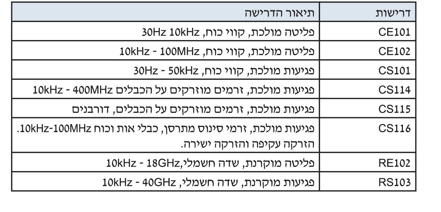 מאמר זה מגדיר את אופן שילוב תאימות אלקטרומגנטית בפרויקטים צבאיים וכן מגדיר את הבדיקות והניסויים שיערכו למערכות על מנת לוודא שהן עומדות בדרישות. המערכות יתוכננו כך שאינטגרציה בינה לבין מערכות אחרות בפלטפורמה המבצעית לא יגרמו לרגישויות והפרעות הדדיות ותושג תאימות אלקטרומגנטית מלאה בהתאם למפרט