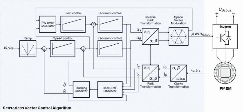 כפי שכבר צוין, האלגוריתם המתקדם לבקרת מנוע עבור המכשירים הביתיים המצויים כיום, מבוסס, בדרך כלל, על טכניקה של בקרה וקטורית (עיין באיור 3). שימוש באלגוריתם של בקרה וקטורית, בתהליך בקרה של השראה בזרם חילופין ובמנועי מגנט קבוע סינכרוניים, דומה לשימוש בבקרה של מנועי זרם ישר עם עירור נפרד. במערכת ייחוס מיוחדת אפשר להפריד את הזרמים של הסטטורים לרכיב שיוצר את המומנט ולרכיב שיוצר את השדה המגנטי. את הרכיבים האלה אפשר לייצג בערכים של זרם ישר ולבקר אותם, הן באופן נפרד וגם באופן עצמאי.
