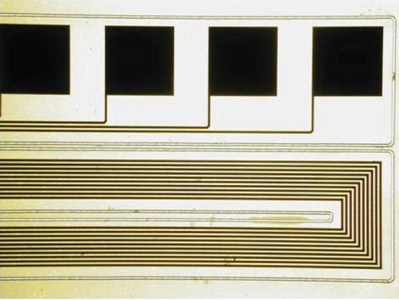 לאחרונה נבדקה אינטגרציה של רכיבים פסיביים, בעיקר מבני RF ופסי RF (תרשים 2), נגדי NiCi עשויים שכבות-דקות [2] (תרשימים 3, 4), נגדי Ni עשויים שכבות-דקות לחישת טמפרטורה וספיקה, ושיבוץ שבבים פעילים במבנים רב-שכבתיים מסוג