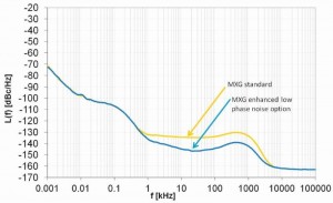תרשים 1: רעש הפאזה של-MXG-B נמוך במיוחד. קיימות רמות שונות של ביצועי רעש פאזה כאפשרויות.