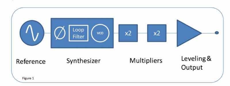 איור 1 מראה את הדיאגרמה המלבנית של מחולל אותות קונספטואלי. עקרון הפעולה הוא ישיר: החל בייחוס – הוא עושה מה שהוא אומר, ומחולל תדר ייחוס עבור המסנתז האמור להשוות כנגד או להכפיל (תלוי בסוג ארכיטקטורת המסנתז בשימוש). רכיב המסנתז של הדיאגרמה המלבנית מפיק תחום תדרים. לדוגמה, מחולל האותות מיקרוגל 2500B של Giga-tronics, הנקרא מסנתז בלתי-ישיר (יותר על כך בהמשך), משתמש במה שאנחנו מכנים מחולל מכוון YIG בעל תחום רחב של 4 עד 10 גיגה-הרץ. לאחר מכן שורה של מכפילים מתוחמים ממותגים מספקים את התדרים הגבוהים יותר, לדוגמה 10 עד 20 גיגה-הרץ מסופק בעזרת הכפלה x2, 20 עד 40 גיגה-הרץ על-ידי x4 ו-40 עד 50 גיגה-הרץ על-ידי x6. לבסוף כדי להבטיח שהאמפליטודה נקבעה נכון יש דרגת מוצא ויישור המשתמשת לעתים קרובות במעגל אשר מכוון עדין את רמת האמפליטודה אוטומטית – המכונה ALC או Automatic Level Control.