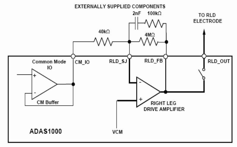 טכניקה המכונה הזנת הרגל הימנית (right leg drive- RLD) יכולה להקטין את דרישות ה-CMR של תצורות המוליכים המרובים. מתח המוד המשותף שרואה המגבר ביחס להארקה ניתן להקטנה אף במערכת בעלת שני מוליכים על-ידי שימוש בצורת RLD המזינה זרם בחזרה אל האלקטרודות 180 מעלות מחוץ למופע לעומת אות ה-CM המגיע. מאחר שעכבות האלקטרודה אינן מותאמות, הזרת הזרם צריכה לטפל בכך, ולהתאים את הזרם/המופע היחסי כדי למזער את אות המוד המשותף היעיל.