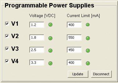 4 ספקי כוח ניתנים לתכנות המוצא בטווח של 0.8÷5.3VDC. כל ספק יכול לספק עד 600mA.