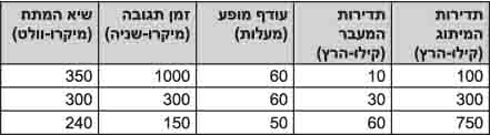 המשרן והקבל עבור כל אחד מהתרחישים נבחרו על פי 4 הנוסחאות המפושטות הבאות: