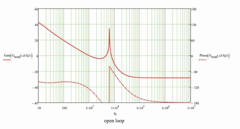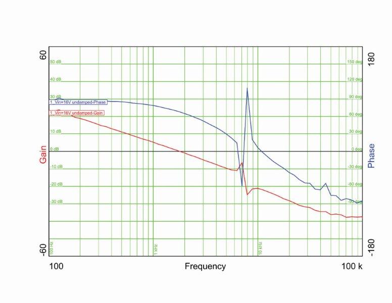 איור 4 מראה את החוג הפתוח הנמדד של מערכת ללא ריסון. ההגבר גדל סביב 6 קילו-הרץ, עובדה שגורמת לבעיות ליציבות המערכת. בצומת המיתוג מתקבל ריצוד (jitter).