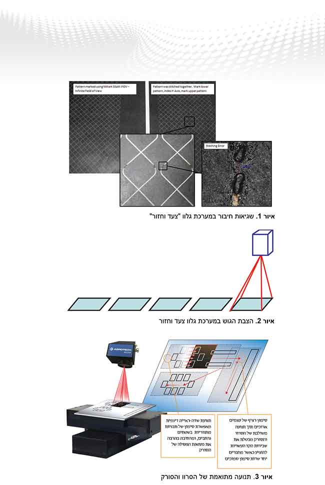 פיתוח אוטומציה חדשני, סדרת ה-™ Nmark של Aerotech, מסנכרן הן את סורק הגלוו והן את תנועת הסרוו (ראה איור 3). Nmark משלבת את שתי הפלטפורמות ביחד ומאפשרת למשתמש לבקר ללא מאמץ את שני צירי הסרוו והסורק בסביבה יחידה. Nmark וממשק הנגזר Automation 3200 מאפשרים למשתמש לתכנן בקוד CNC-G סטנדרטי, ולכן לפעול בסביבת תוכנה מוכרת. הם אינם דורשים שימוש בשפות תכנות או ספריות מרובות. כמו כן, איחוד זה של צירי הסרוו והגלוו מאפשר לשניהם לנוע בו-זמנית ובצורה מתואמת. מאחר שבקר התנועה A3200 “יודע” את המיקום הן של הגלוו והן של הסרוו בכל נקודת זמן, הוא יכול לחלק בנקל את פרופיל התנועה המוזמנת כדי ליצור תנועות ארוכות בזמן אל הסרוו ותנועות קצרות, מהירות יותר אל הגלוו. דבר זה מאפשר ל-FoV היעיל של הגלוו לשמש תחום מלא של תנועת השלבים של הסרוו, וליצור בכך FoV אינסופי (IFoV).