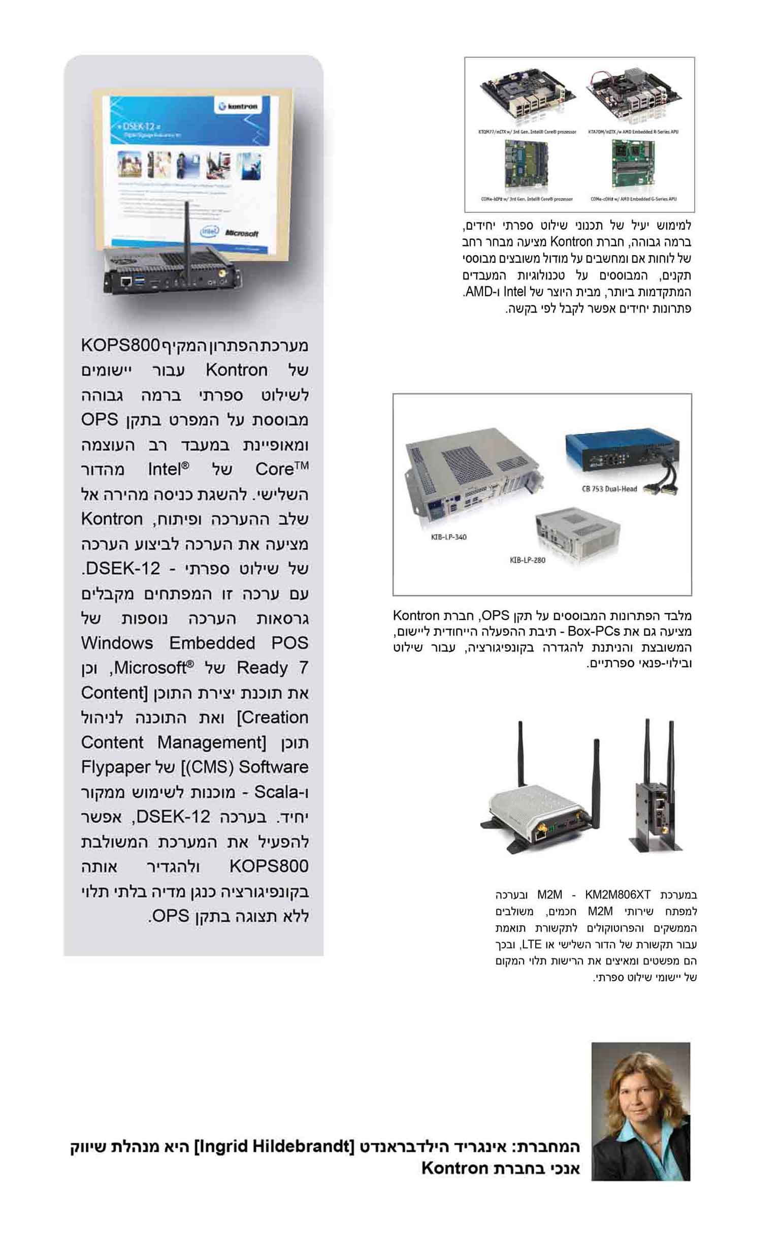 הרכיבים המשמשים למימוש פתרון כזה לשילוט ספרתי, שהוא רב עוצמה ובה בעת גם מאובטח, נמצאים כבר בהישג יד. האתגר שמולו צריכים לעמוד ספקי פתרונות השילוט הספרתי, יהיה לכן, איך לשלב את כל הרכיבים באופן יעיל ככל שאפשר. דרך נוחה במיוחד להשגת רכיבים רבים ככל שאפשר ממקור יחיד, היא על ידי בחירה בפתרונות מבוססי תקנים ברמת מערכת, כמו למשל, אלו המבוססים על מפרט פתוח ניתן לחיבור (OpenPluggableSpecification), שהם כבר מוכנים לשימוש. המפרט OPS פותח על ידי Intel והוא נתמך על ידי חברות כמו Kontron, במטרה להפוך לתיקני את התכנון והפיתוח של פתרונות שילוט ספרתי עם טכנולוגיה של מסך LCD, מסך מגע או תצוגת מקרן, בדומה בממדיו למכשיר רדיו ברכב. נגן שילוט ספרתי בנוי כמו יחידה הניתנת להחלפה בקלות, ואשר אפשר להכניס אותה אל תוך תצוגה תואמת לתקן OPS. באותה מידה של קלות, אפשר יהיה להחליף את המערכות לצורך ביצוע שדרוג ביצועים בעתיד או להחליף אותם בקלות במקרה של עבודת תחזוקה. אם ניקח בחשבון שכל רגע פרסום שהולך לאיבוד הוא רווחים אבודים, התועלת הטמונה באפשרות של החלפה מהירה בקלות, הופכת להיות בעלת חשיבות רבה.