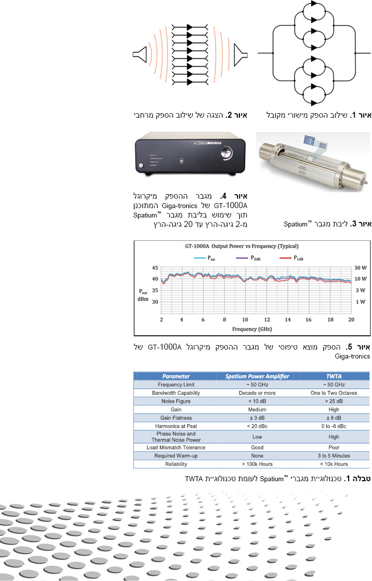 Giga-tronics Incorporated מ-San Ramon, California מספקת מגברי מכשור RF/מיקרוגל תוך שימוש בליבת מגבר ה-™Spatium. ראה איור 4.