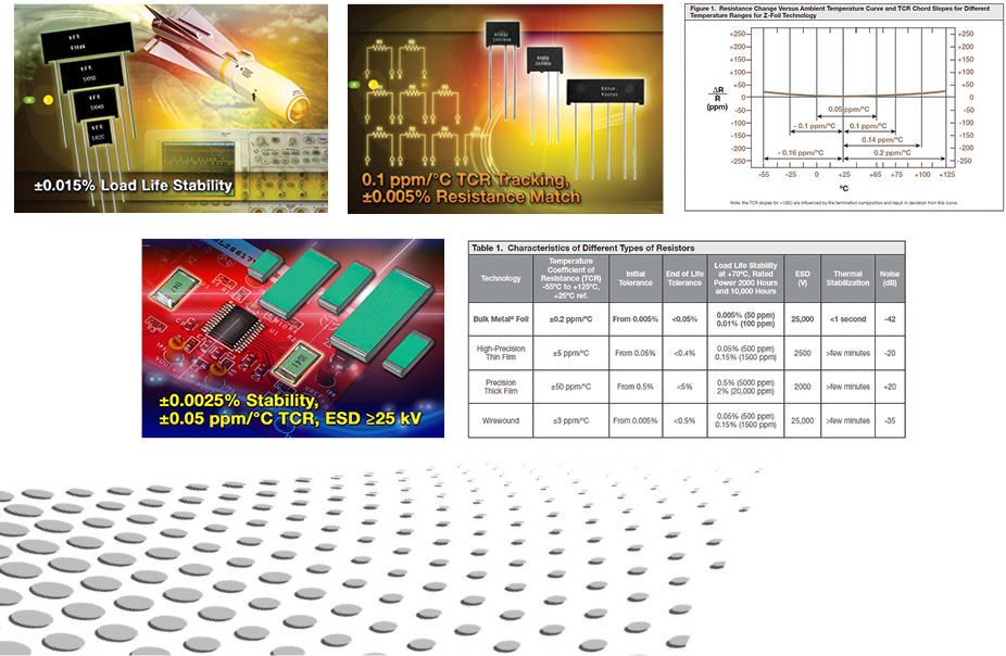טכניקות של יצירת Bulk Metal Foil מייצרות שילוב של מאפייני נגדים רצויים מבוקשים ואידיאלים שבעבר לא ניתן היה להשיגם: TCR נמוך (0.05ppm/°C מ-0°C עד 60°C), דיוקים גבוהים (אפיצות) עד כדי 0.005% (שיורדים עד ל-0.001% כאשר הנגדים אטומים באריזה הרמטית), יציבות לטווח ארוך של 0.005% ב-70°C במשך-2,000 שעות תחת עומס קבוע, Tracking TCR בין מספר נגדים של 0.1ppm/°C מ-0°C עד 60°C, וחסינות ESD של לפחות עד 25,000V.