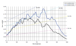 - fig 5. Extended NIR response (blue) compared to standard (black) VITA-5000 spectral response