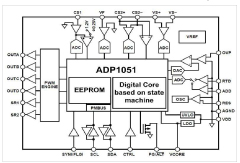 מחוללי ה-ADC המשולב וה-PWM מיוטבים לשימוש בספקי-כוח. מתח המוצא נמדד בשניהם, ADC מאוד מהיר לשם רוחב-פס לולאה אך גם ADC מאוד מדויק לשם דיוק DC טוב. התוצאה של שני ה-ADCs משולבת לאחר מכן במישור הדיגיטלי. מתכנן ספק-הכוח אינו צריך לדאוג על גושים פונקציונליים אלה. איור 3 מראה את השילוב של מעגלים אנלוגיים שנבחרו בקפידה וכיצד הם משולבים עם EEPROM ומעגל בקרה דיגיטלית מבוסס על מכונת מצב.