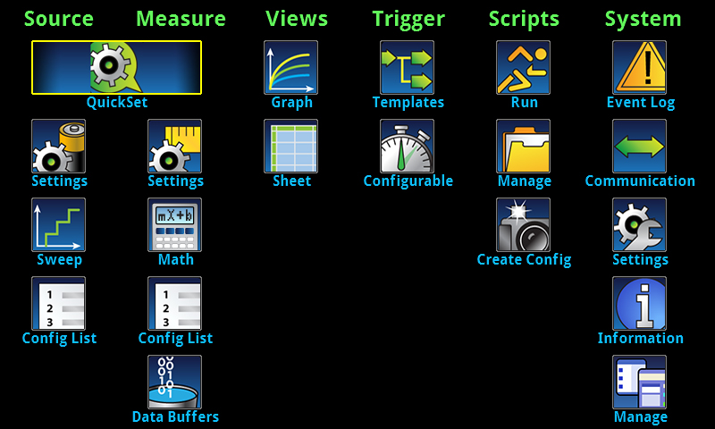 רשימה של quick setups מובנים מאפשרים למשתמש בנגיעה אחת להגיע למצב מדידה נדרש. כמו כן קיימת גם אפשרות של KickStart no programming שנותנת למהנדסים הפעלה מיידית של מדידות.