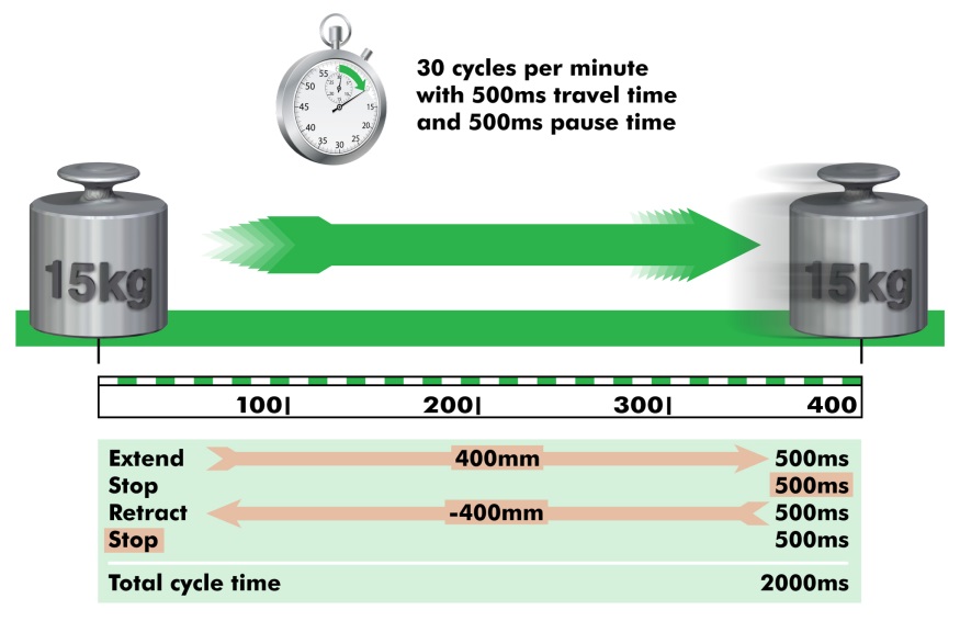 - תמונה 2. דוגמת יישומית לתנועה ליניארית של 30 מחזורים בדקה ועומס של 15 ק”ג