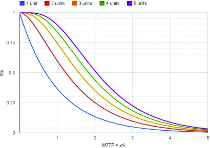 אם לשאוף לקצוות, אנחנו יכולים לחשב שאם אנחנו כוללים חמישה ספקי-כוח בתכנון, ללמעלה מ-50% של המערכות יהיה לפחות ספק פעיל אחד לאחר שחלף כפליים ה-MTTF.