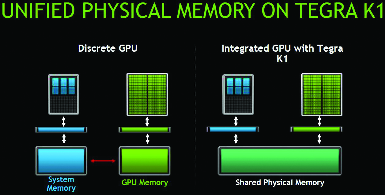 חברת Nvidia הצליחה להכניס ארכיטקטורת GPU מסוג Kepler לתוך מעבד Tegra. מדהים לראות מהלך כזה של מעבר מפתרון ברמת כרטיס מסך אל תוך מעבד על-שבב (SoC), דבר שמאפשר ליצרני SoM לשבץ את המעבד בכרטיסים. למעשה מדובר בסוג רביעי של חומרת עיבוד גרפי בנוסף לשלושת סוגי העיבוד שהוצגו קודם לכן, כאשר העיבוד ייעשה על-גבי מודול סטנדרטי מן המדף.