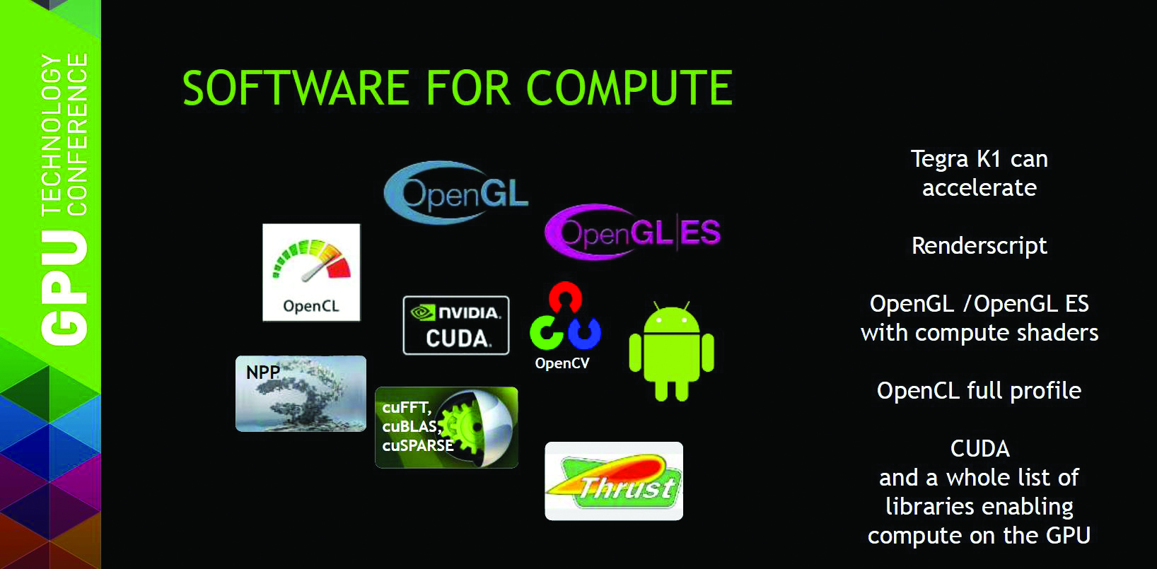 בנוסף ל-CUDA, הפתרון תומך בחידושים האחרונים בגרפיקה וב-APIs למחשוב GPU, לרבות Open GL, OpenCL וגםRenderScript, דבר המעניק חוויה ויזואלית שקודם התאפשרה רק על הטאבלטים והטלפונים החכמים המתקדמים ביותר בשוק.