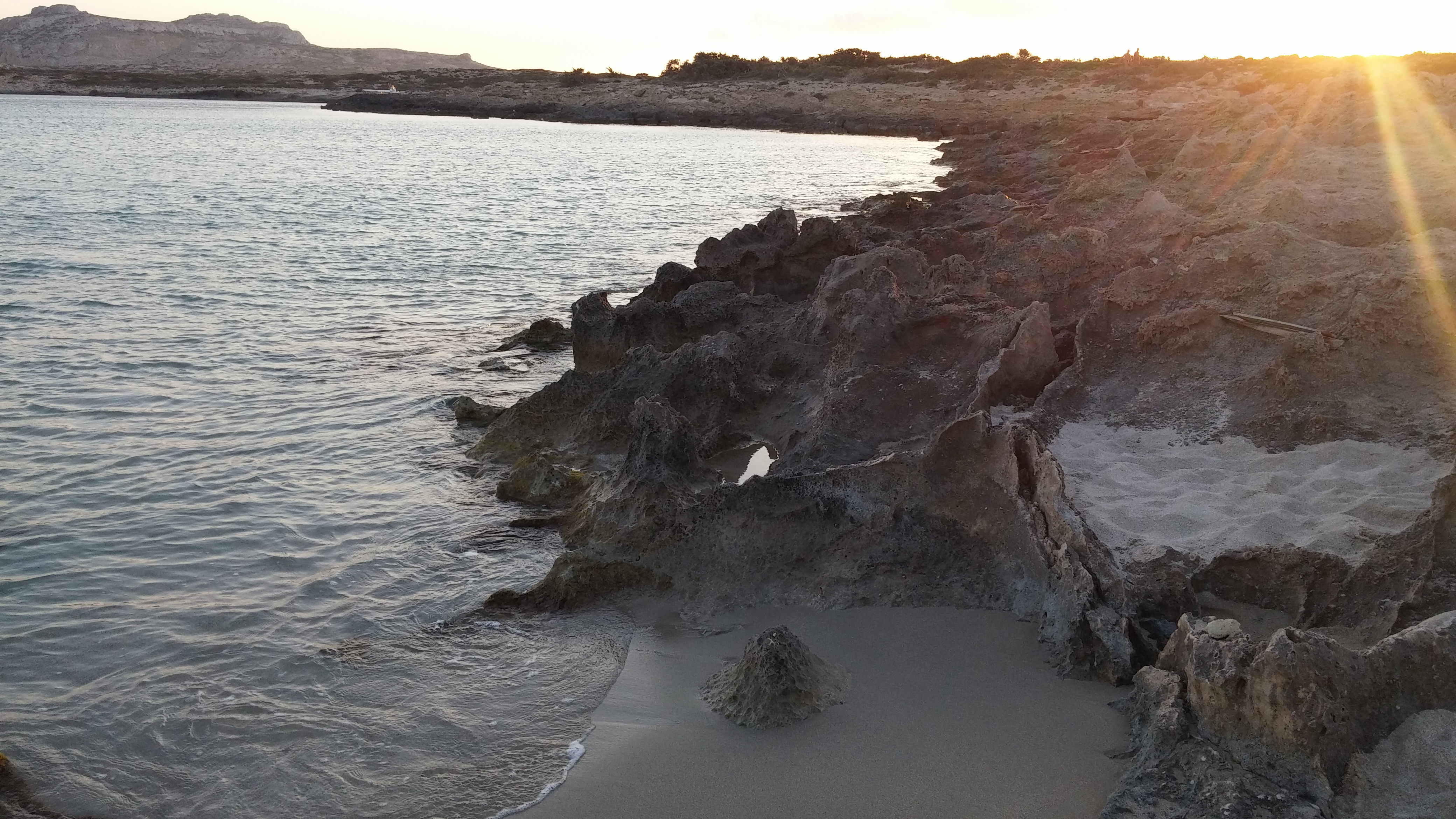 חוף מרשים נוסף, אחאטה – Achata Beach: נמצא בצד הצפוני של העיר פיאגדיה. כדי להגיע אליו צריך לעבור דרך הכפר הציורי APERI. הירידה לחוף עוברת דרך יער עצי אורן שצומח על צלע הר תלול וכמעט נושק למים. החוף עצמו מאורגן ונקי. ייחודו של אחאטה הוא במערות שנוצרו בסלע, כך שניתן לשחות בין המערות עם שנורקלים. אני ניצלתי את החוף לסיים את ספרו של פול אוסטר, סאנסט פארק. כל אחד והצלילות שלו…