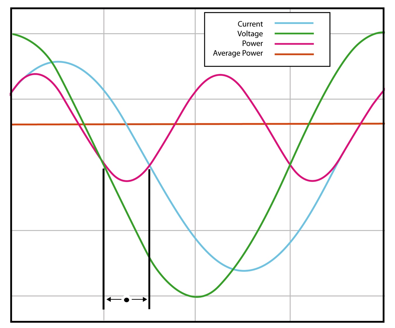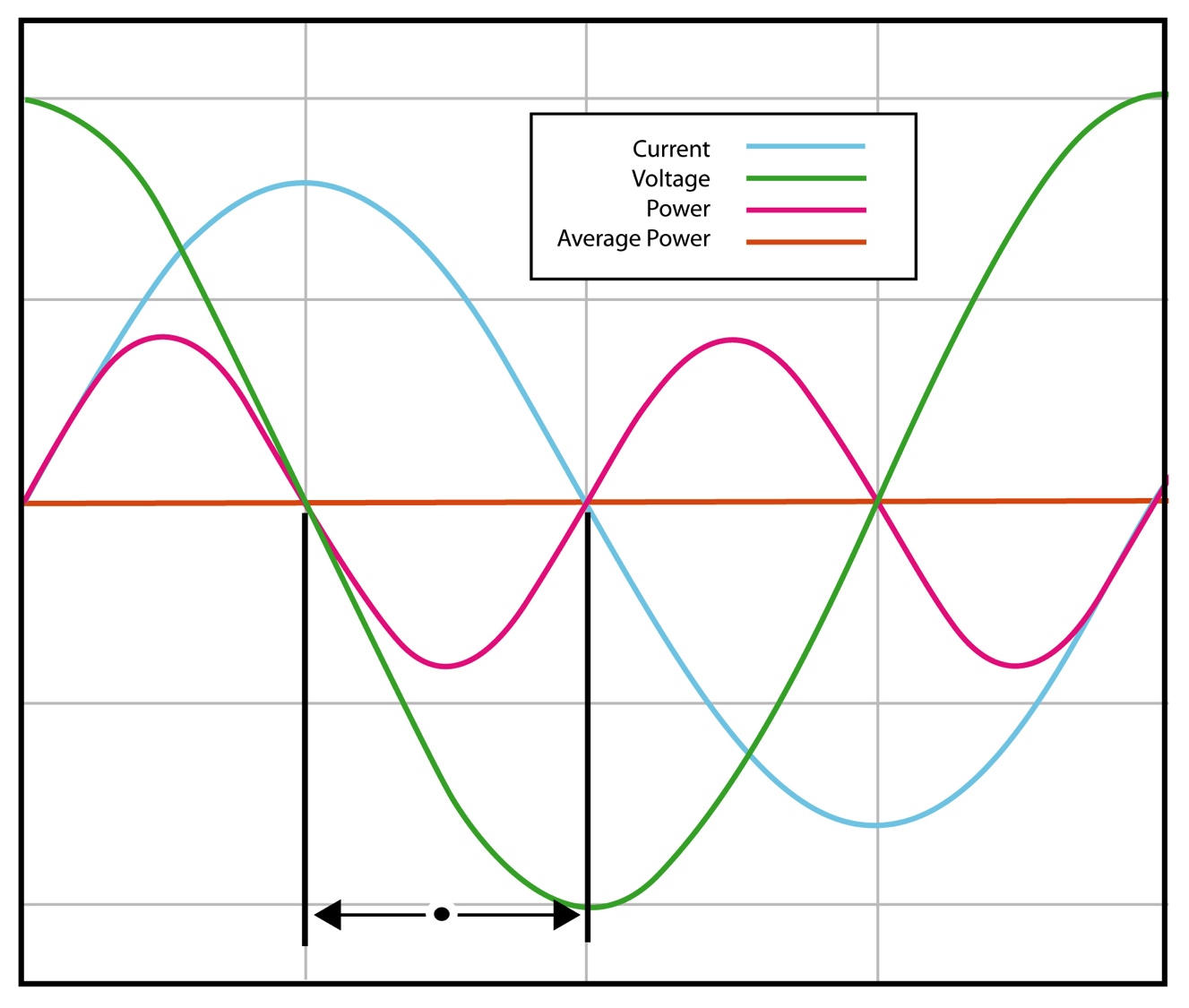 כאשר הזרם מקדים או מפגר אחר המתח, הערך של אינטגרל זה יהיה תמיד פחות מהערך עבור המקרה של “במופע” למשך אותו מרווח. דבר זה משקף את התכונה של סליל או קבל לפעול בתור אוגר אנרגיה; בנקודות שונות במהלך מחזור ה-AC הרכיב הריאקטיבי הוא או אוגר אנרגיה, או מחזיר אותה למערכת.