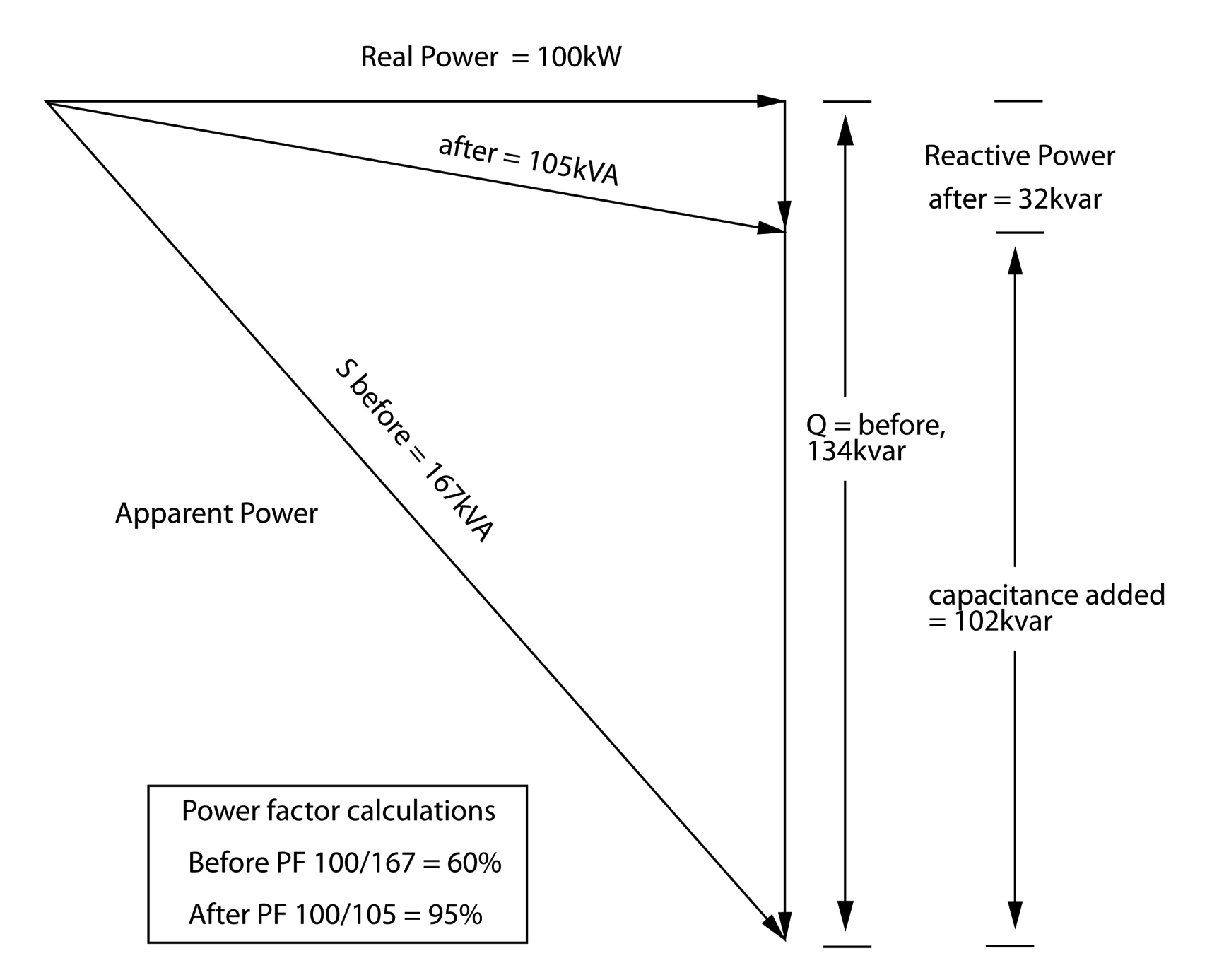 ההספק המדומה הוא הסכום הוקטורי של ההספק הממשי וההספק הריאקטיבי (Q), הנמדד בוולט-אמפרים ריאקטיביים (var); כמוסכם, יחס זה מבוטא כ: