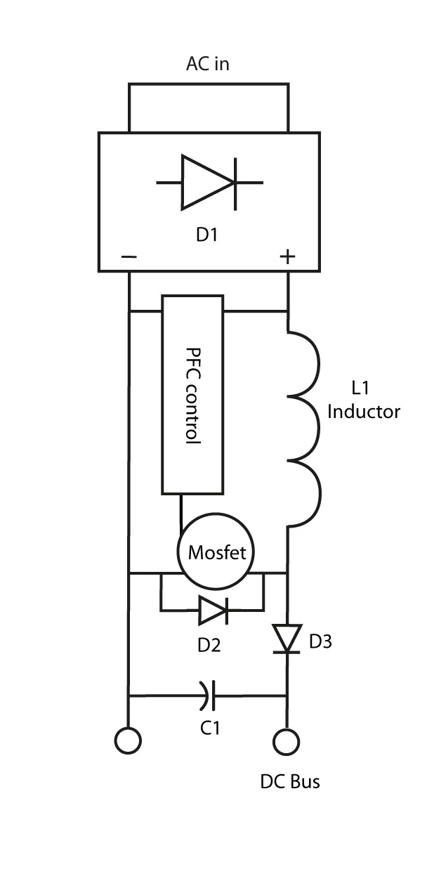 גם כאשר רוב הציוד האלקטרוני הוזן על-ידי ספקי-כוח אשר השתמשו בויסות ליניארי, מקדם ההספק (ועיוות צורת-הגל) היה לעתים קרובות פחות מאידיאלי, אך הוא טופל לעתים רחוקות על-ידי כל גורם מלבד ספקים גדולים ביותר. הסידור האופייני, המסורתי, הלא-מקוון היה של שנאי שלאחריו מיישר גשר, המזין קבל-מאגר. הולכה דרך המיישר הייתה קורית כאשר מתח ה-DC בקו המוצא היה פוחת מתחת לערך הרגעי של ספק ה-AC של השנאי, שיכול היה לקרות במחזור השלם בעומס מלא, או רק בשיא של צורת-הגל AC בעומס קל.