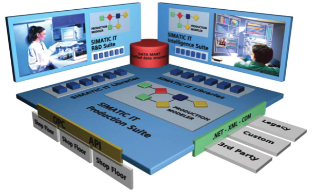 מערכת ה-Simatic IT של Siemens בנויה כמכלול מודולים המטפלים בהיבטים שונים של הייצור, כגון פיתוח, בקרת איכות, ניטור ביצועים, חישובי מדדים כמותיים ואיכותיים ועוד. סט התהליכים העסקיים המנוהלים באמצעות מודולים אלה והמשותפים למכלול תחומי תעשייה, “ארוזים” בגרסת הבסיס של המוצר. בנוסף מכלול תהליכים עסקיים ותהליכי עבודה האופייניים לתעשיות ספציפיות כמו התעשייה הכימית, תעשיית הרכב או תעשיית מזון ומשקאות, “ארוזים” בספריות מוצר המיועדות ליישום למפעלי תעשייה ספציפיים.