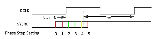 איור 6. השהיית מופע מיתכנתת עבור SYREF כדי לענות לתזמון ניטור זמן התקנה והחזקה של SYSREF