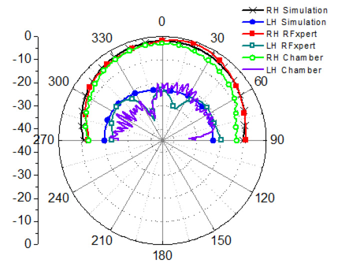 האנטנה שנבחרה עבור הבדיקה בפרק זה היא טלאי מקוטב מעגלית המוצג באיור 5. אנטנת הטלאי נערכה לקיטוב ימני עבור הבדיקות. התוצאות מראות שמדידות מקוטבות ליניארית של שדה קרוב-מאוד יכולות לשמש למדידת הביצועים של אנטנה מקוטבת מעגלית. מערכת המדידה של שדה קרוב-מאוד יכולה להצביע על כיוון הסיבוב (ימני או שמאלי), לשרטט תבניות קיטוב הן ימניות והן שמאליות ולספק את היחס הצירי בכל הזוויות.