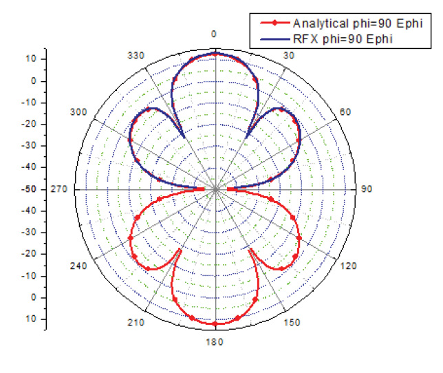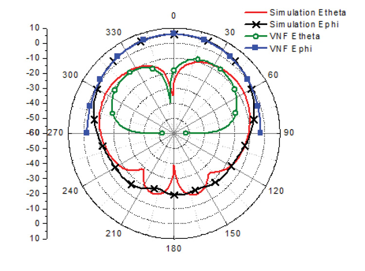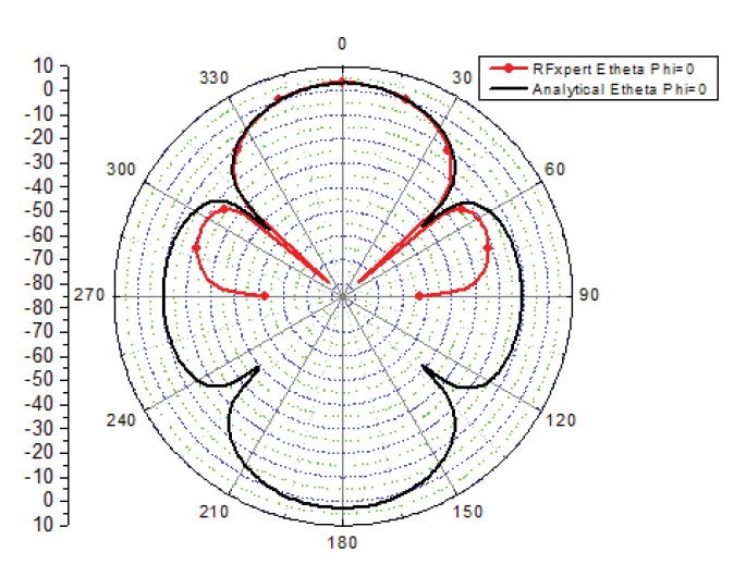 פילוג אחיד של שדה-H משמש בבדיקה זו. ערכי השדה מופקים בפתח של 16 סמ’ x עם דגימות כל 1 סמ’ תוך יצירה של מערך מדידה הכולל 16×24. ערכים אלה נבחרו כדי להתאים למערכת המדידה של שדה-קרוב-מאוד הממומשת הנדונה בהמשך במאמר זה. האמפליטודות של מדידות אלה נקבעו באחידות ל-1A/m וכל המופעים נקבעו לאפס מעלות כדי לדמות את הפתח המקרין בצד הרחב (broadside). הקיטוב הוא בציר Y או לאורך Phi=900. המדידות בשדה-הקרוב הוטמנו בקוד של מערכת המדידה של השדה הקרוב-מאוד ותבניות הקרינה של השדה-הרחוק בשני המישורים הראשיים ו-Phi=900 מושוות עם התוצאות התיאורטיות המוצגות באיור 1.