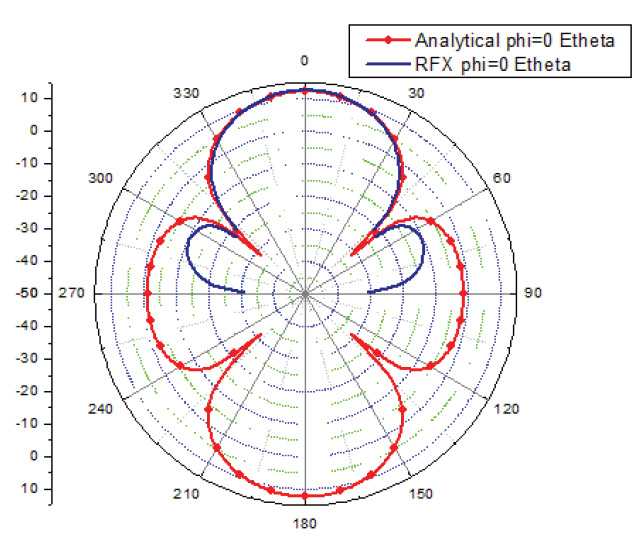שוב נראה קשר טוב מאוד בין תוצאות השדה הרחוק התיאורטית והמוקרנת. ניתן לראות את אותו השינוי באיור (a) כאשר () Phi=00, כאשר גודל הסוקר מגביל את הדיוק לכ- מ-00, בעוד התוצאות באיור 2(b) מראות התאמה מלאה.