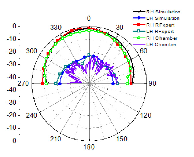 האנטנה שנבחרה עבור הבדיקה בפרק זה היא טלאי מקוטב מעגלית המוצג באיור 5. אנטנת הטלאי נערכה לקיטוב ימני עבור הבדיקות. התוצאות מראות שמדידות מקוטבות ליניארית של שדה קרוב-מאוד יכולות לשמש למדידת הביצועים של אנטנה מקוטבת מעגלית. מערכת המדידה של שדה קרוב-מאוד יכולה להצביע על כיוון הסיבוב (ימני או שמאלי), לשרטט תבניות קיטוב הן ימניות והן שמאליות ולספק את היחס הצירי בכל הזוויות.