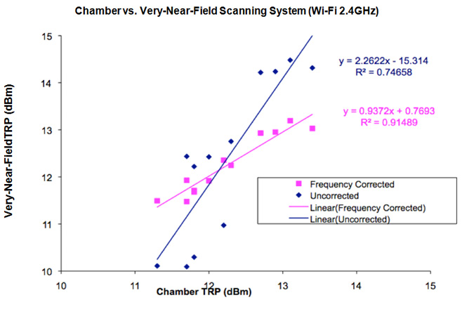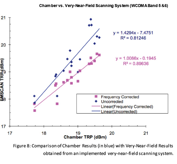 התוצאות באיורים 7 ו-8 מאשרות שמדידות שבוצעו בשדה-הקרוב-מאוד יכולות לשמש לחיזוי TRP כאשר הן מתוקנות עבור השפעות צימוד הניתנות לחיזוי. בתוך מערך נתונים גדול זה ההפרש הוא פחות מ-. התוצאות גם מראות שניתן לבצע שיפורים לקיזוז הצימוד הגנרי אם יודעים את גורם הצימוד המסוים של התקן. עם קיזוז נוסף זה אנחנו רואים קשר חיובי הדוק מאוד.