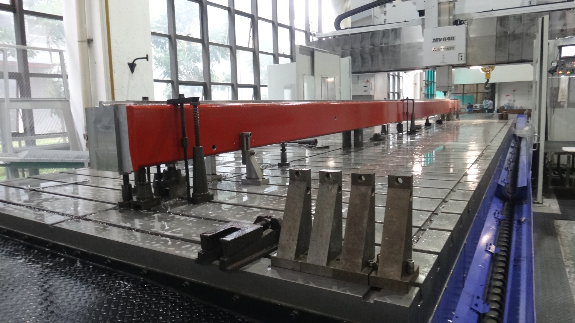 הקורה נתמכת על אותם סמכים כפי שמותקנת במכונה. המסבים מותקנים, ומשקל המדמה את העומס נרתם לקורה לכיול ואינטגרציה סופית.
