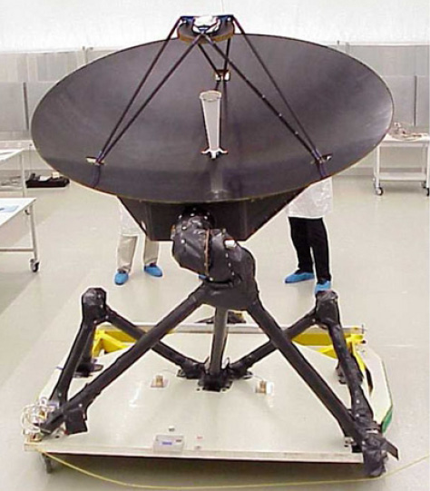איור 9. אנטנת התקשורת של הרוזטה. קוטר האנטנה 2.4 מטר והיא פועלת כמשדר בתחום X הספק השידור 24Watt וקצב השידור מגיע עד 28kbps. התמונה לקוחה מאתר ESA