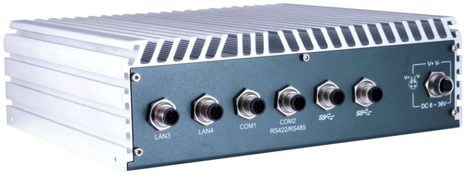 מחשב עם מחברים M12 מדירוג IP67 מוקשחים, שלושה RS-232, אחת / 422/485, ארבע יציאות USB וארבע רשתות LAN GbE בנפרד