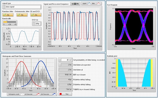 איור 7. אתה יכול לשלב אוסילוסקופים NI עם ה-NI LabVIEW Jitter Analysis Toolkit כדי לבצע מדידות של שלימות האות בתוך ה-NI LabVIEW