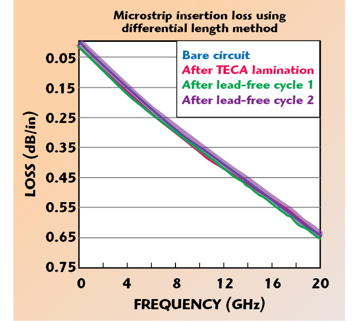 איור 4. בדיקת הפסד מעבר מיקרוסטריפ של מעגל חשוף, ולאחר מכן בעקבות צירוף ה-TECA לגוף הקירור ושני מחזורי הלחמה ללא-עופרת