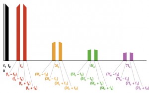אם אנו מניחים כי האות כולל תדירות יחידה, f1, או אות מורכב יותר הפרוש על פני הפס מ – f1ל – 2f, אנו יכולים לנתח את ספקטרום היציאה של המאפנן שלנו, כפי שמוצג הדבר בתרשימים שלהלן. הנח מאפנן מאוזן באופן מושלם ללא זליגת אות, זליגת גל נושא או עיוות, כך שהכניסה, הגל הנושא, ותוצרים מלאכותיים, אינם מופיעים ביציאה. הכניסות מוצגות בשחור (או באפור בהיר בתרשימי היציאה, אף שהן אינן תמיד נוכחות).