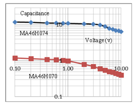 - איור 12 . קיבוליות ואראקטור כפונקציה של ממתח