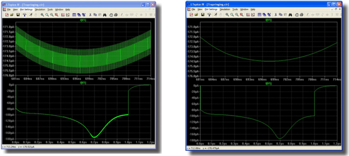 איור 7. השוואה בין סימולציית Trap רגילה )שמאל( לזו ששונתה ב- LTspice )ימין( ואת