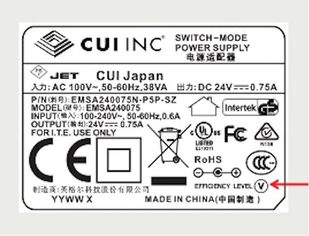 תמונה 1. סימון יעילות ספקי כוח חיצוניים בהתאם לפרוטוקול הבינלאומי לסימון יעילות אנרגטית