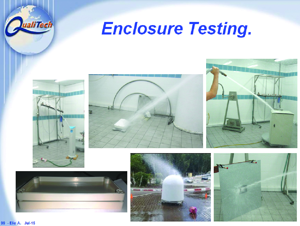 - מגוון תמונות של בדיקות סביבה לאטימות ) אבק ומים ( על פי תקנים שונים המבוצעות בארץ