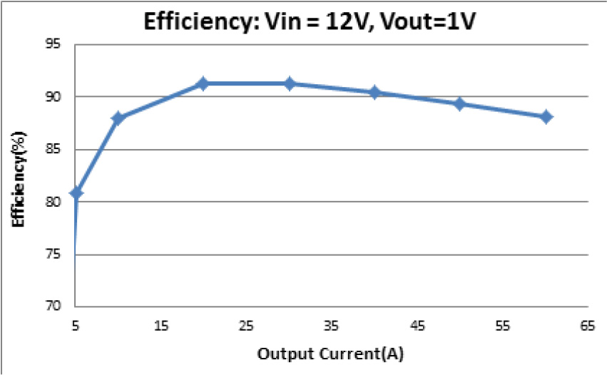 60 איור 3. יעילות ממיר צעדים מוזן SEPIC אמפר כנגד זרם יציאה של 12 וולט בכניסה ו 1- וולט ביציאה