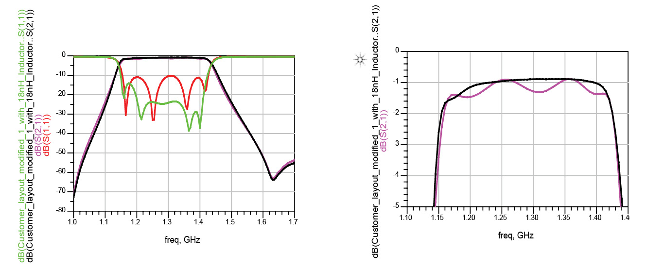 איור 4. תרשימים של הפסדי החזרה של בפרישה של מעגל הלקוח לעומת הפרישה החלופית המוצעת עם רוחב משטח אות שעבר שינוי