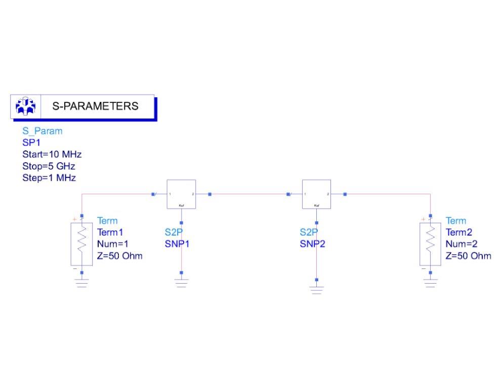 - איור 1. הדמיה של שני מסננים מעבירי נמוכים ללא החזרות דגם XLF-421+ מחוברים בטור