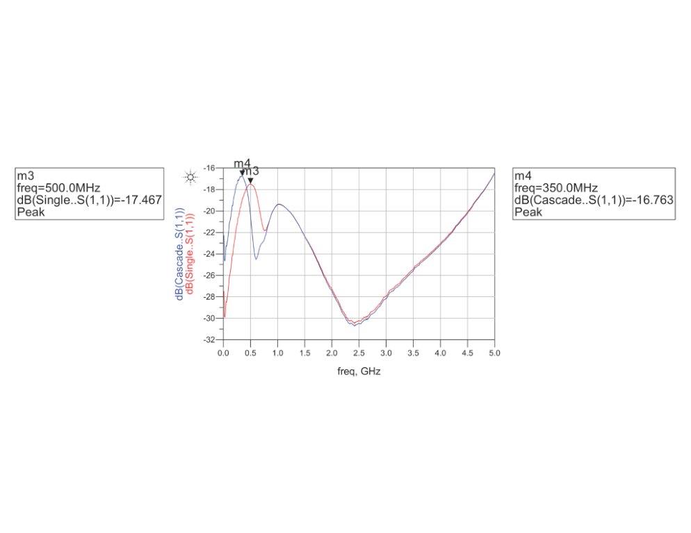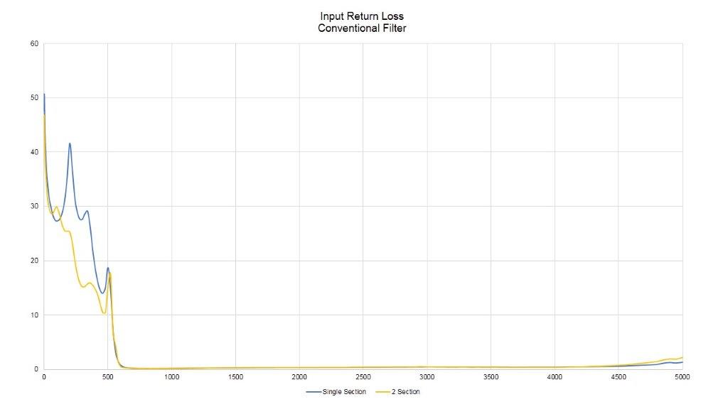 - איור 3. נתוני הדמיה עבור הפסדי החזרה בכניסה: מסנן יחיד בהשוואה לשני מסננים בטור
