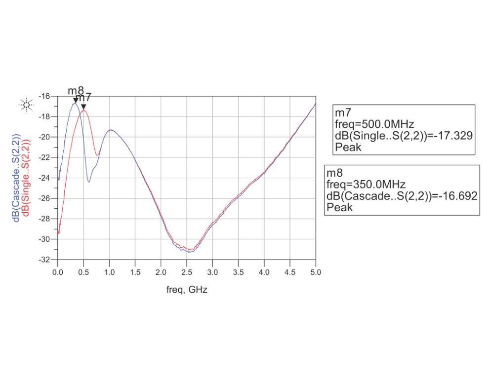 - איור 4. נתוני הדמיה עבור הפסדי החזרה ביציאה: מסנן יחיד לעומת שני מסננים בטור